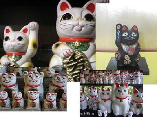 商売繁盛の 縁起物として、日本では 古くから 片手を上げたポーズの猫の置物